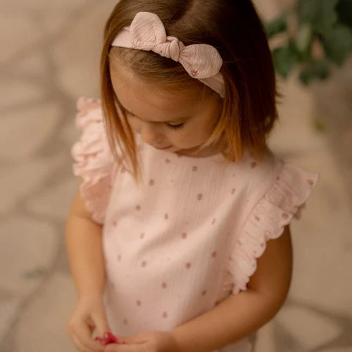 Fashionista Friends! Time to shine and add a headband to your outfit. This charming set of two headbands will make your look extra special! Made from comfortable crinkle-quality fabric with stretch and an elastic back for a good fit. Choose light pink with small flowers or the colorful all-over Fairy Garden Flower design. Both headbands have a cute bow on top. Made from organic cotton, these headbands are a must-have for every little fashionista. Available in size 1 (size 74 – 86) and size 2 (size 92 – 104).