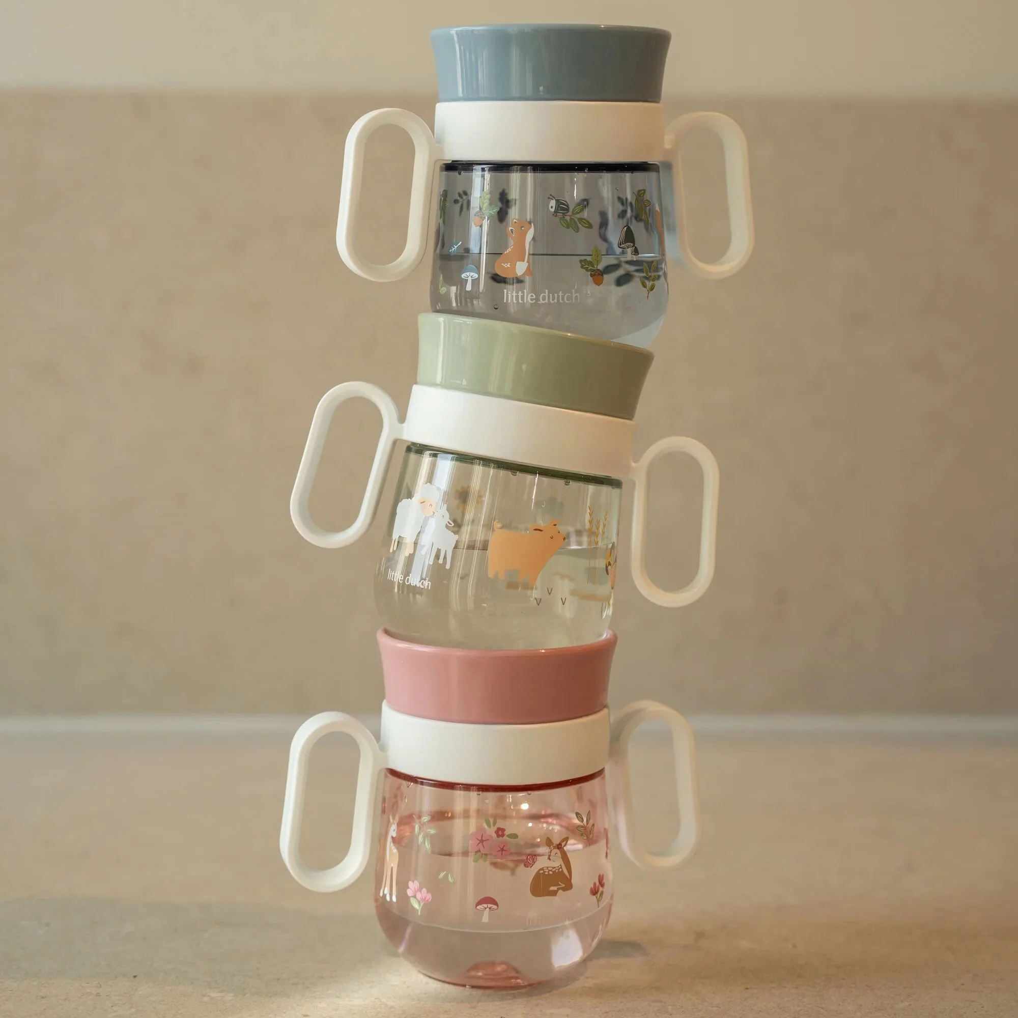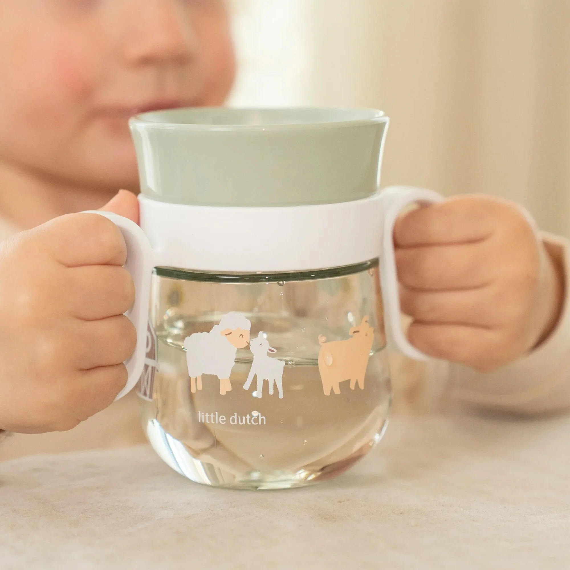 Independent drinking, all around. The Mepal Mio 360° drinking cup with a capacity of 200 ml is ideal for curious little ones who want to learn to drink independently. Thanks to the smart 360° rim, your child can take a sip from any side, just like from a regular cup – but without spilling. The leak-proof valve automatically closes as soon as your child stops drinking. This makes the cup perfect for both home and on the go. The two handles provide a firm grip, even for small hands. The cup is made of durable, BPA-free material and is easy to clean in the dishwasher. A practical and beautiful solution for every stage of growing up.