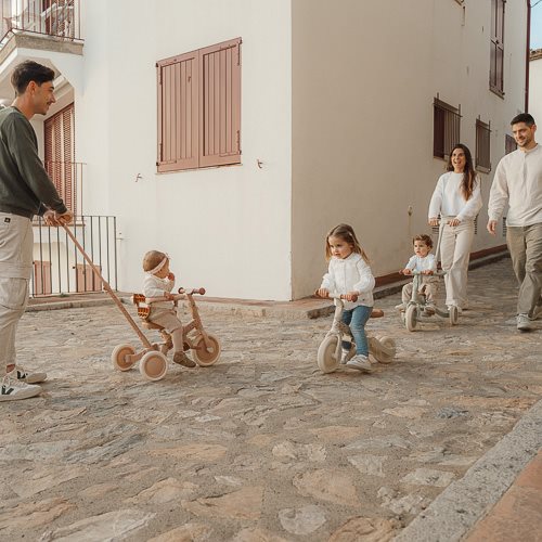 Hop, time to go out! With this beautiful soft pink and brown detailed 4-in-1 balance bike, the first (bicycle) adventures are made like this. Ideal to get to know cycling in a playful way. Can’t your little one walk or cycle yourself? No problem, the push bar helps you a hand. Safety for everything, thanks to the belt and the safety ring, which can easily be removed if they are no longer needed. From tricycle to balance bike in an instant – and the pedals? You can easily store it under the saddle! Light, compact and adjustable for children from 1 to about 3 years.