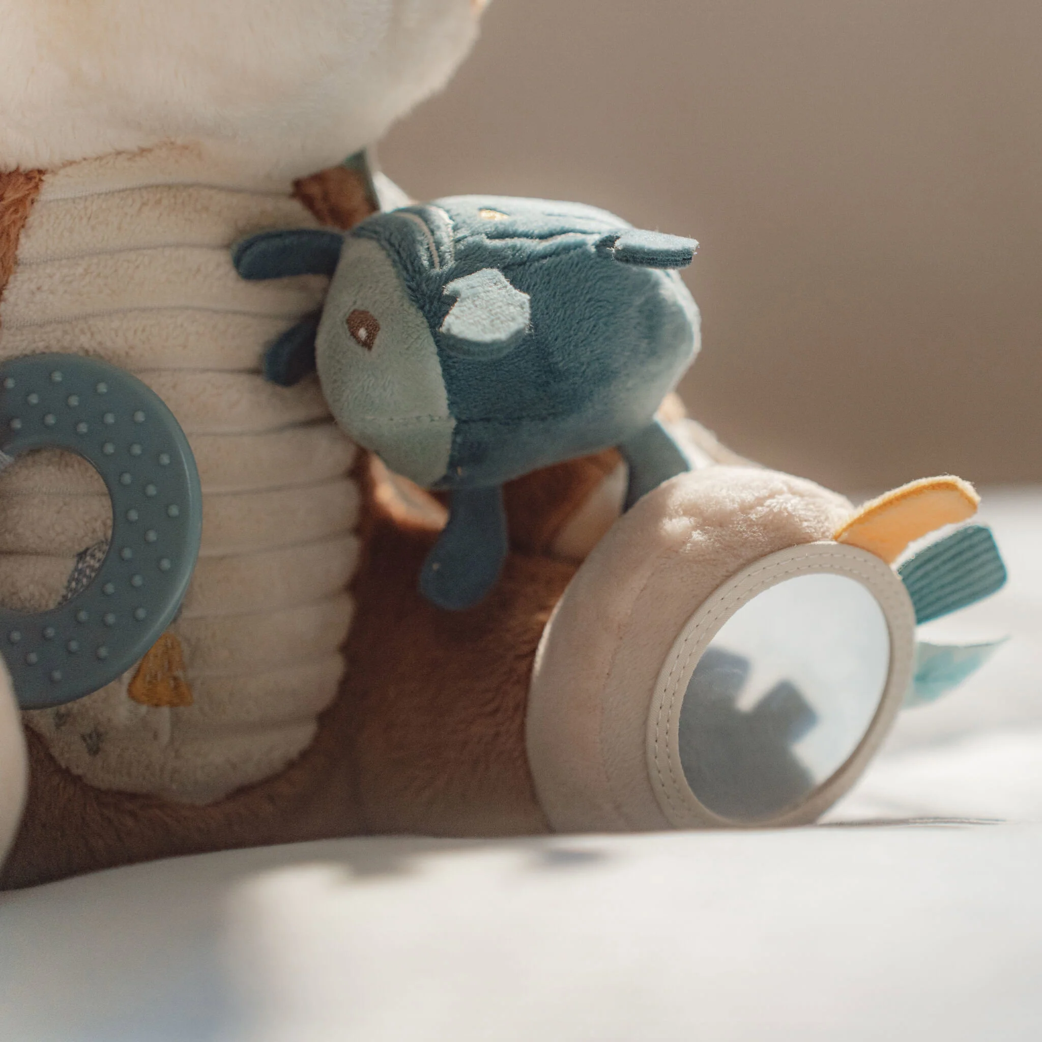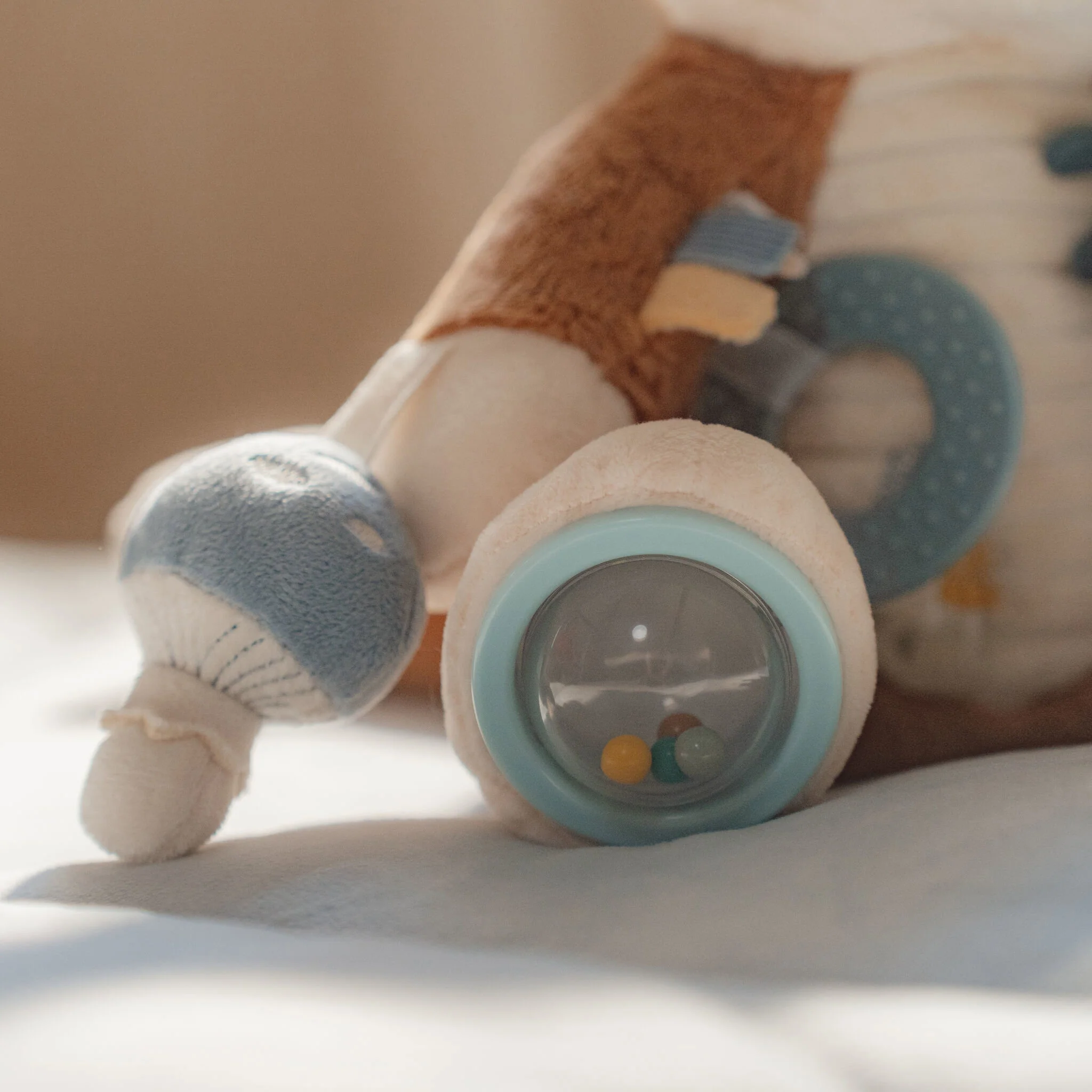 Cuddle and play! This sweet little fox promises more than just cuddles. Discover all the activities it hides. The rattling sound, the crinkling beetle on the shoulder, and tags, an acorn and mushroom to fiddle with. The rings on the paw and the mirror under one foot – so many details to stimulate your little one’s curiosity. And after all that playing, the cute fox inspires the sweetest dreams about the enchanting forest where Forest Friends play.
