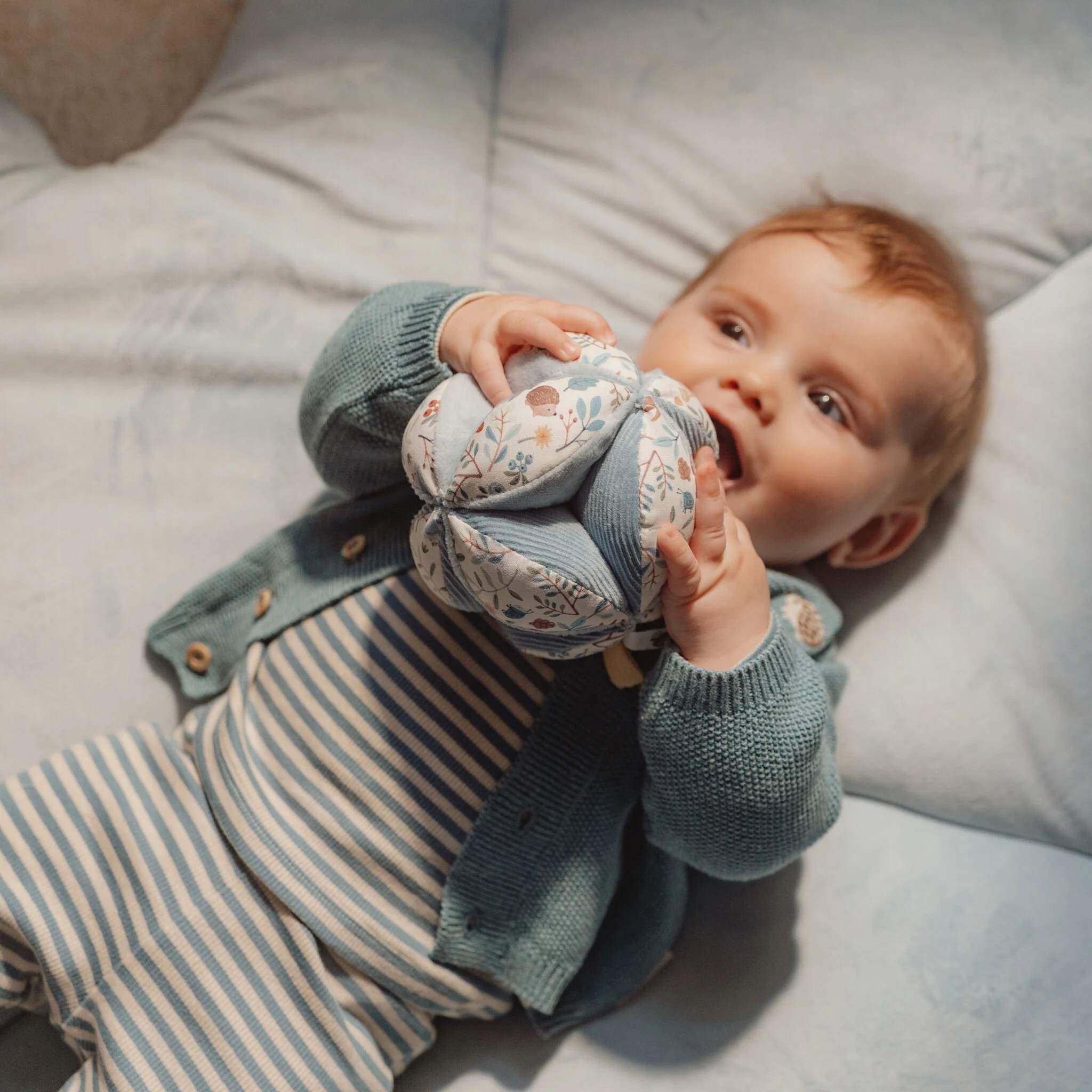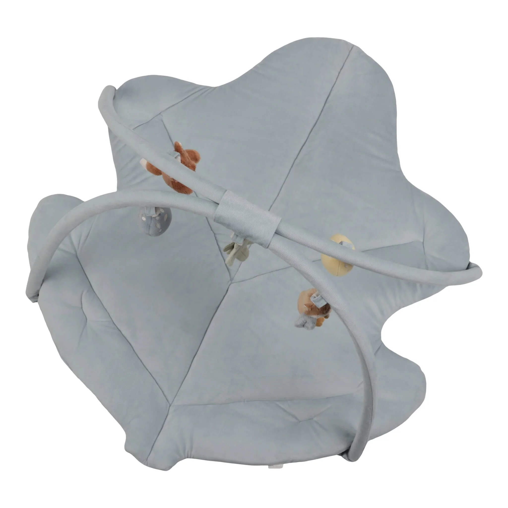 So much to see, feel, and hear! Every day is a new adventure with this leaf-shaped play mat. The blue mat has two large corduroy arches from which five different plush toys from the Forest Friends collection hang. The cute fox, the wise owl, yellow and blue mushroom, and the leaf help your child develop sensory skills and stimulate hand-eye coordination. WARNING: To prevent the child from becoming entangled and injured, remove this toy when the child begins to crawl on hands and knees. To be assembled by an adult.