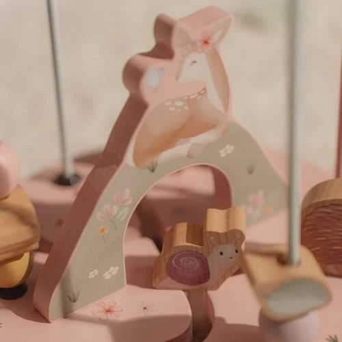 Move the beads from left to right in the magical world of Fairy Garden. Along the way, you will meet the sweet deer, the hedgehog, the ladybug, and the little snail, who live and play in the garden. Slide them back and forth to discover the blooming flowers, lush leaves, and juicy strawberries growing in the garden. Use your imagination and let the adventure begin! This wooden activity spiral offers an educational and enchanting experience for your child.