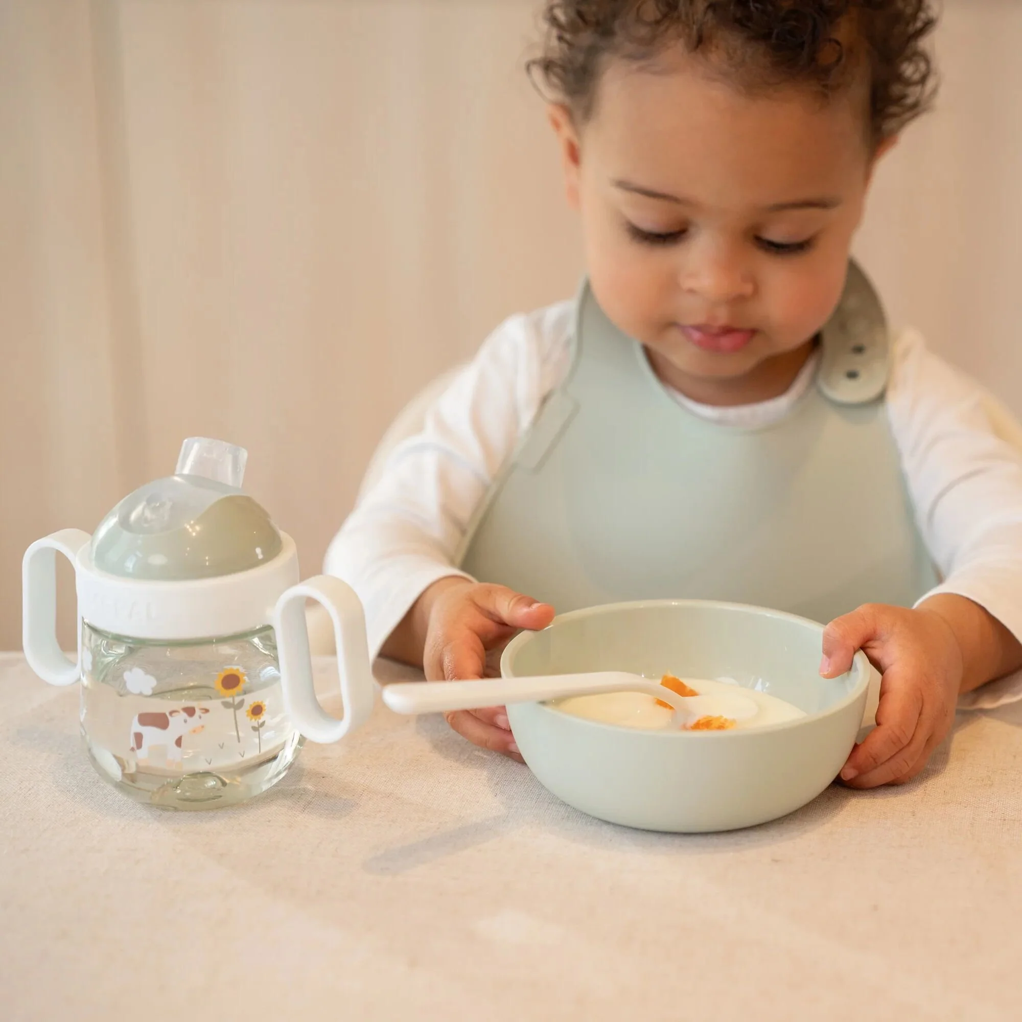 Learning to drink independently becomes a little adventure. The Mepal Mio non-spill spout cup with the cheerful Little Farm print of Little Dutch is ideal for little ones who want to learn to drink on their own. With a capacity of 200 ml and a soft drinking spout, the cup offers comfort and convenience with every sip. The two sturdy handles ensure a good grip in small hands. Thanks to the leak-proof design, everything stays tidy, even if the cup tips over. The transparent lid makes it perfect for on the go and keeps the drinking spout clean when not in use. Made from durable, BPA-free material and easy to clean in the dishwasher. The cute farm animal design makes every drinking moment something to look forward to – at home or on the go.