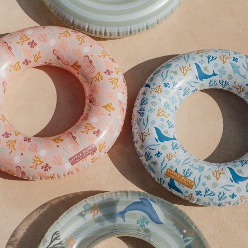 Bobbing in the water becomes a party with the Ocean Dreams Pink swim ring. The pink inflatable swim ring features various illustrations of sea creatures. Hold on tight and paddle through the water. Water fun guaranteed for your little one! Deflating is easy and the swim ring is then compact to take with you. Also in your suitcase on vacation! After inflating, the swim ring is 50 centimeters wide.