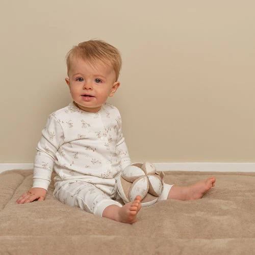 Just try to grab the ball! This grab ball with its interesting shape provides a great challenge for your little one. The surfaces with different textures and patterns invite grabbing and exploring. The ball is easy to pick up for small hands, and the cheerful sound of the rattling bell rewards your baby’s effort. On the Baby Bunny decor, the easy-to-grab tags will stimulate the senses, develop grip, and keep your baby quite busy in the playpen.