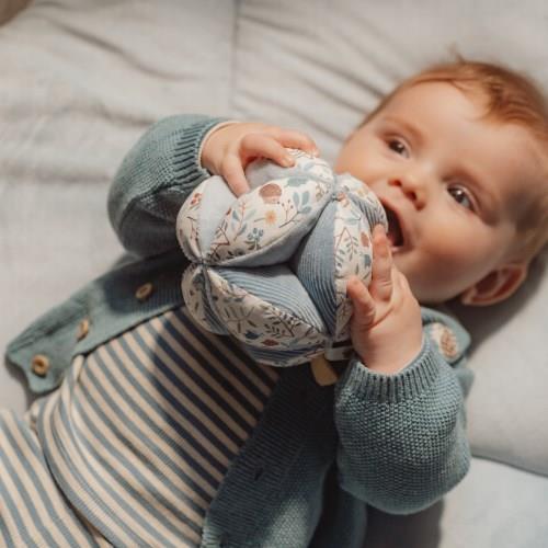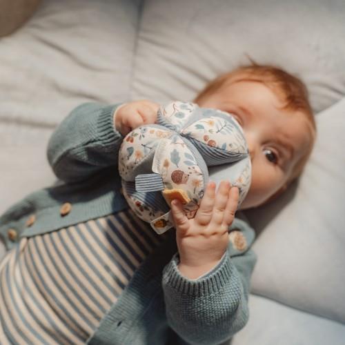 Try to catch the ball! This grab ball with its interesting shape provides a great challenge for your little one. The surfaces with different textures and patterns invite grabbing and exploring. The ball is easy to pick up for small hands, and the cheerful sound of the rattling bell rewards your baby’s effort. On the beautiful decor of Forest Friends, the easy-to-grab various fun labels will stimulate the senses, develop grip, and keep your baby busy in the playpen.