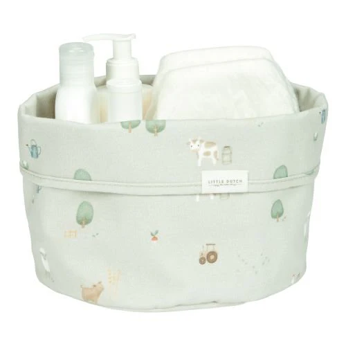 No more scattered diapers, tubes, and bottles: with this large dresser basket from Little Dutch, the dresser remains beautifully tidy and organized! The dresser basket from Little Dutch is beautifully finished and provides storage space for all the products you need daily to care for your baby. A beautiful accessory for the nursery. This one from the Little Farm is enriched with the beautiful farm print. Also available in other sizes and shapes.