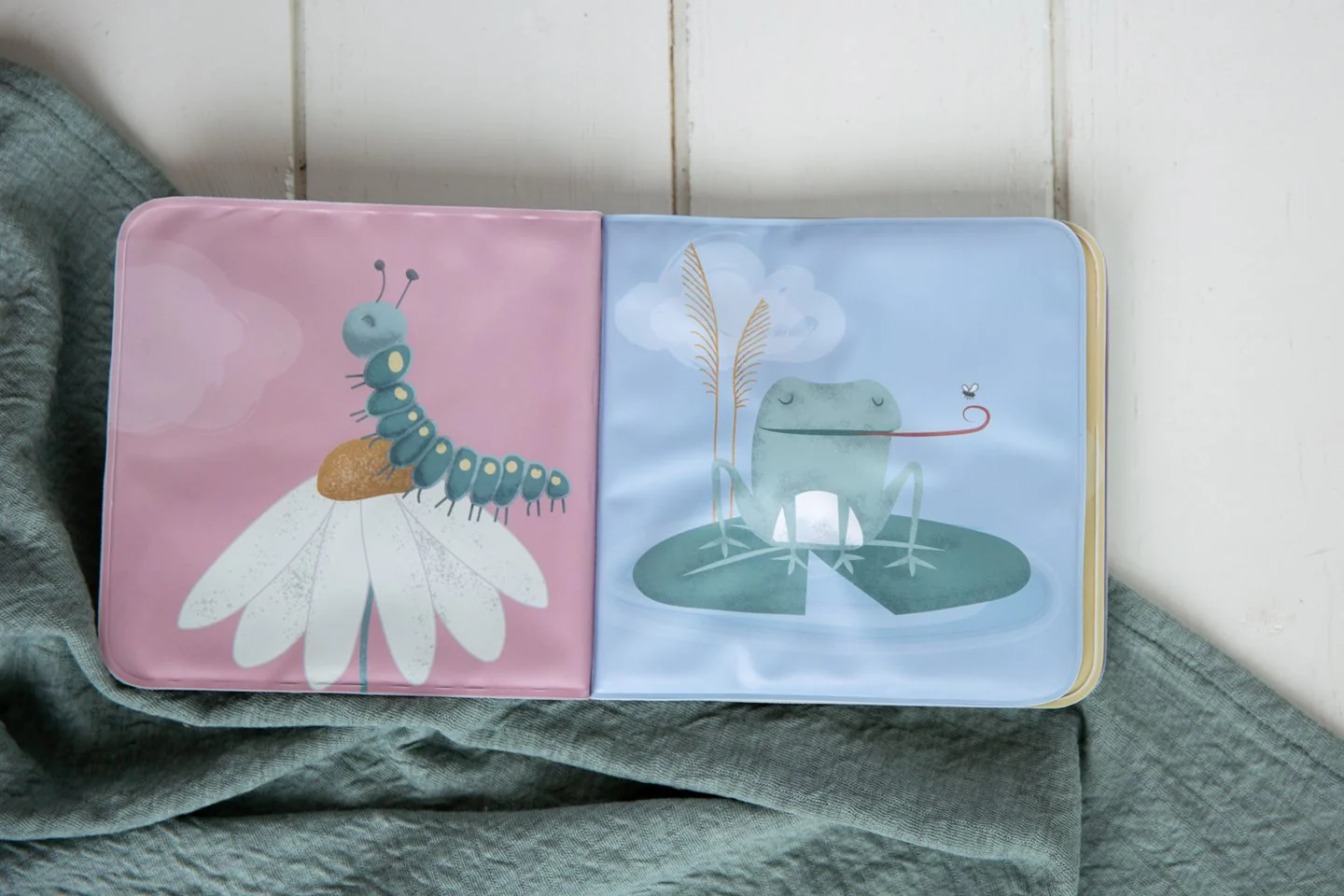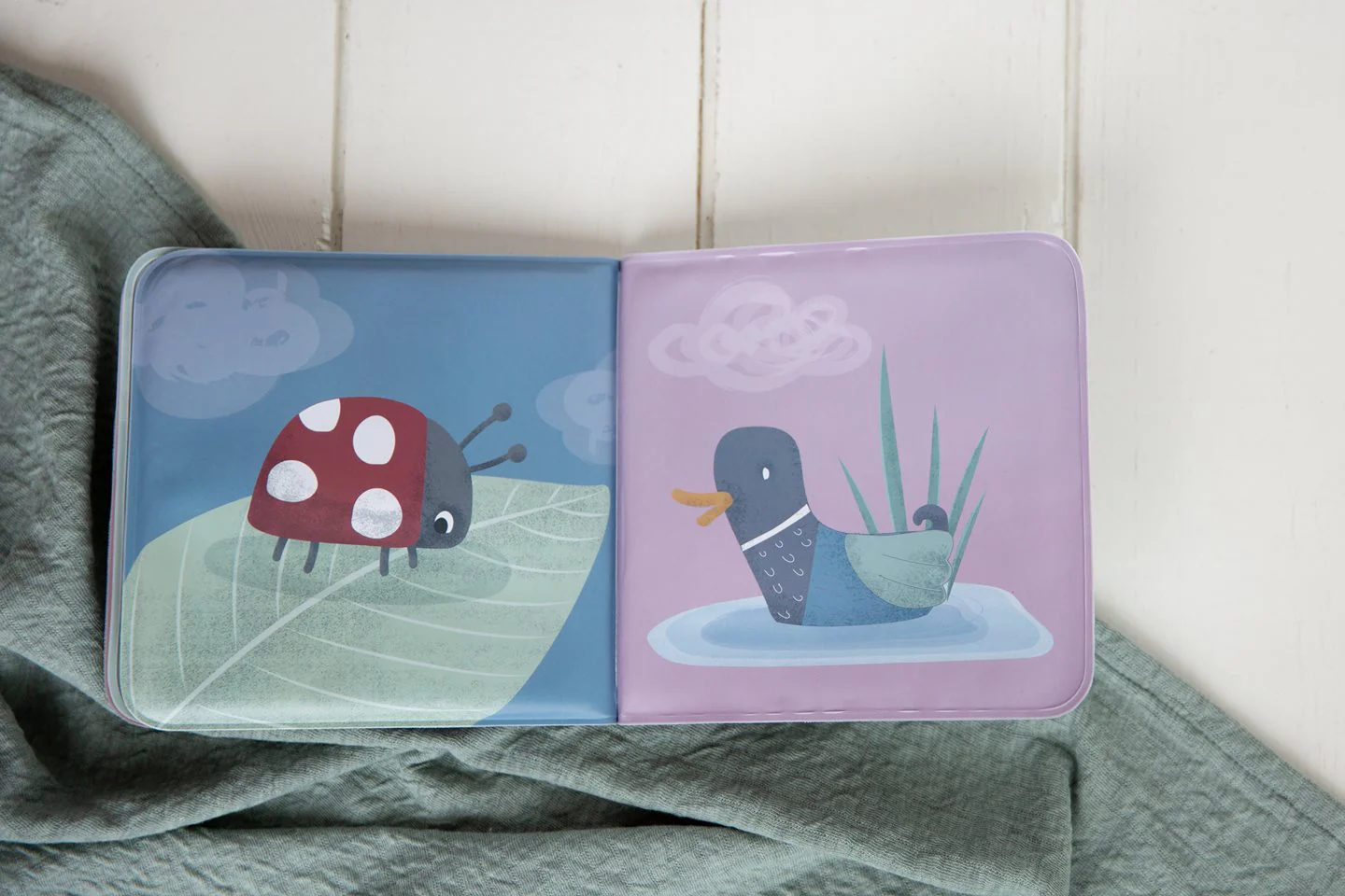 Bathing is much more fun with this bath book. Meet Goose and his friends (and other creatures) who live around the pond in the countryside.