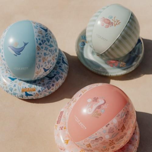 Are you coming to play on the beach? The beach ball is easy to inflate and provides hours of fun. The ball is illustrated with the well-known characters from the Ocean Dreams Blue collection. Done playing? Let the beach ball deflate and it is easy to store again. The inflatable beach ball has a size of 35 centimeters.