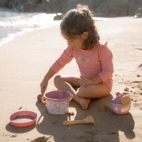 This 5-part bucket set from Little Dutch Contains all the things that your child needs on the beach: a bucket, watering can, scoop, sieve and rake. Height of the bucket: 9.5 cm. Performed in the pink color scheme with ocher yellow accents of the Pink Flower theme. Comes in Net. Suitable for children from 1 year.