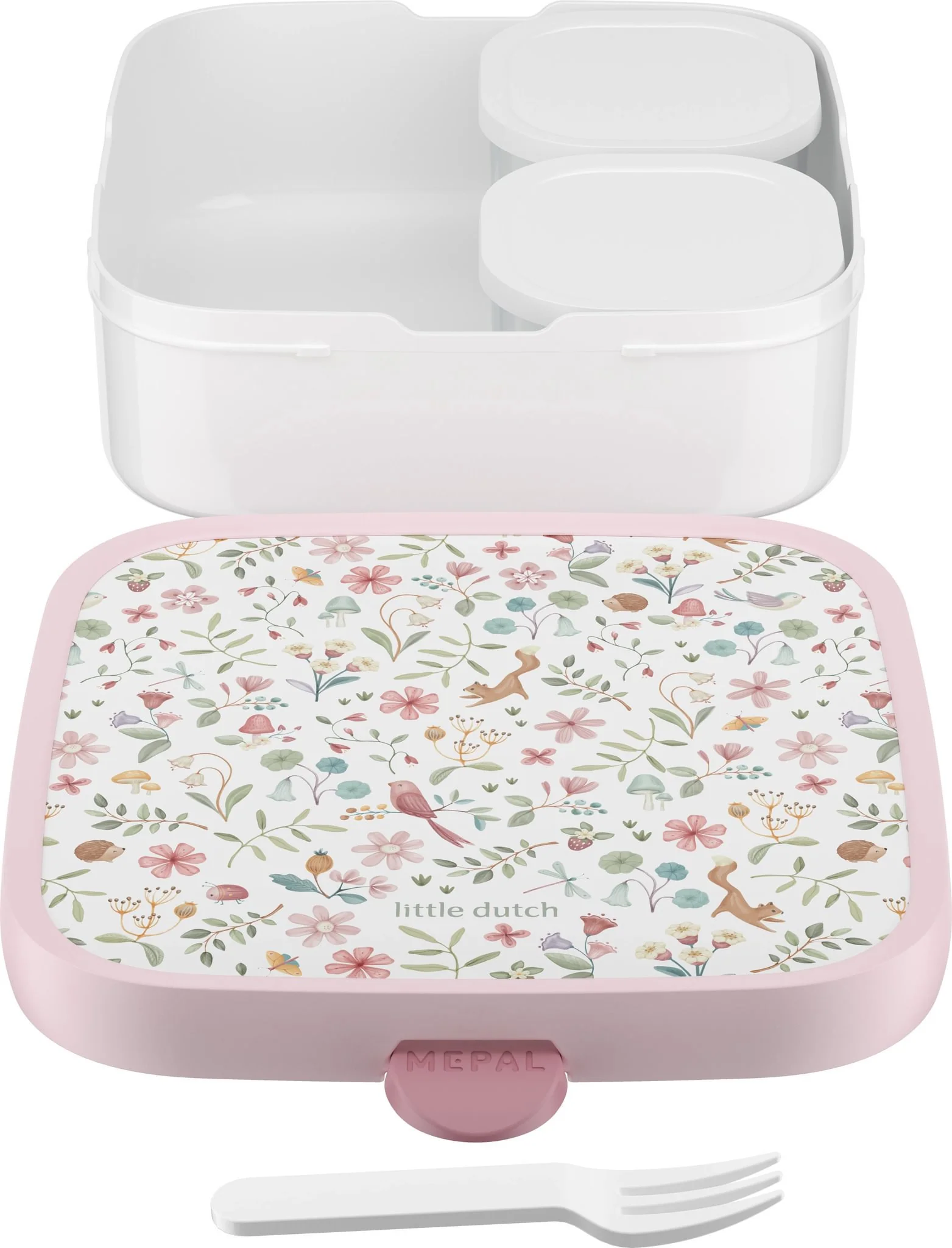 In the mood for variety? With the extra-large lunchbox from Little Dutch in the cute Fairy Garden print, every lunch becomes a party. The two removable bento boxes with lids and a handy fork provide plenty of room for creativity. A sandwich, pieces of fruit, or a cup of yogurt? Everything stays nice and fresh and in place. Don’t need the bento boxes? Then take them out and you have plenty of space for bread. After use, the box and containers can simply go in the dishwasher. Ready for a new lunch full of goodies.