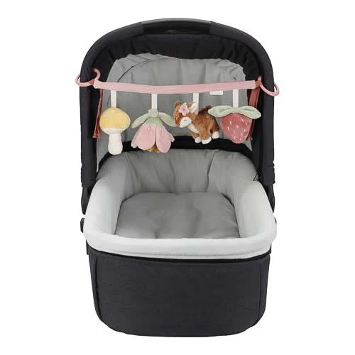 Rattle, squeak, rustle. Discover the four adorable toys from the Fairy Garden collection on this stroller chain. The cute deer, colorful flower, mushroom, and strawberry can’t wait to entertain you during a walk. Give your child a sensory experience with this colorful stroller chain, which stimulates the development of hand-eye coordination while you are on the go. Easily attach the stroller chain to a stroller. WARNING: To prevent the child from getting entangled and injured, remove this toy when the child starts crawling on hands and knees. To be assembled by an adult.