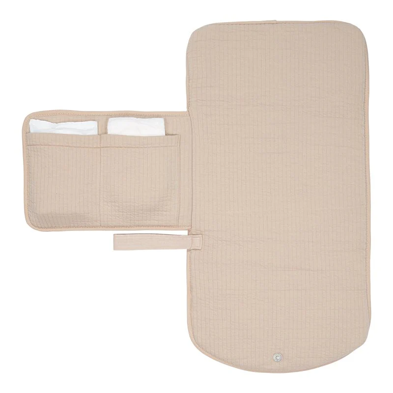 The Little Dutch changing mat with handle Pure Beige is ideal for on the go and nice and soft for your little one. The changing mat has storage pockets for diapers and wipes. You can easily fold the mat and close it with the magnetic closure with one hand. There is a handle on the outside, so you can easily take the mat with you and hang it on your wrist.