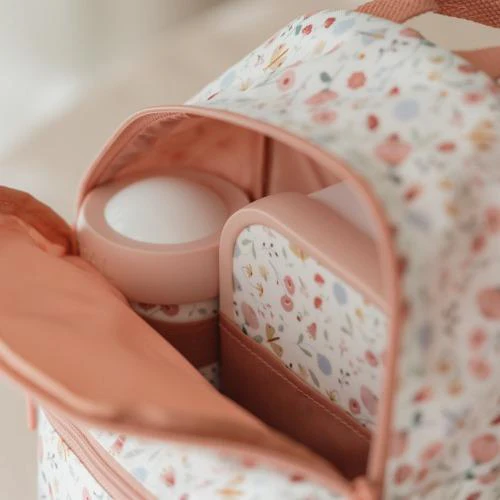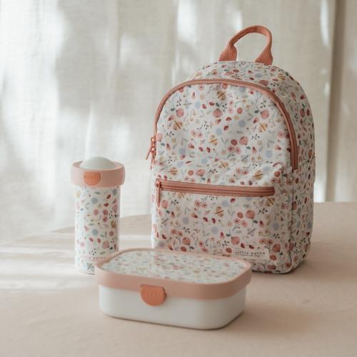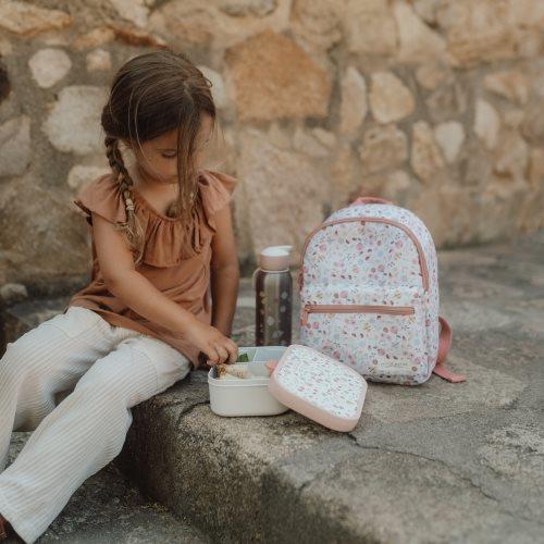 This cute Flowers & Butterflies backpack is ideal for school or family visits. The backpack is made from 10 recycled PET bottles. The shoulder straps are adjustable and can be supported by fastening the chest strap. Inside, there are two elastic bands to keep drinking cups upright so they don’t leak. There is also a special compartment to protect your child’s artwork and a label to provide the backpack with his/her name and address.