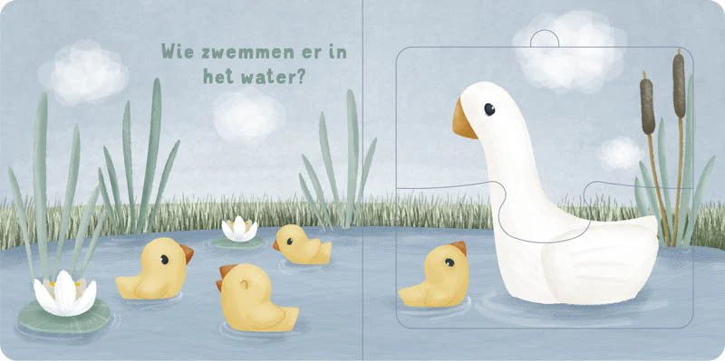 Who is chirping high up in the tree? Can you solve the puzzle so the little birds get something to eat? Snuggle up on a lap, listen to the story, and solve all the puzzles in this fun little book. Reading a book together is good for language development. With the book ‘My Animal Puzzle Book’, your little one is also encouraged to use their imagination to answer the questions on each page and to think solution-oriented for solving the puzzles. The book is made of cardboard and contains two puzzles of two pieces and two puzzles of four pieces.