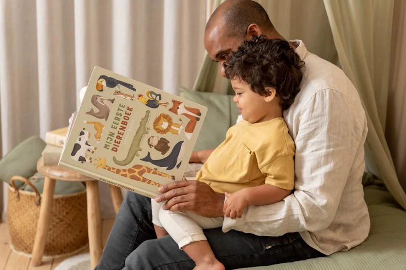 Can you point out the lion? And have you already seen the little hedgehog? There are so many animals to discover! Which animal is your favorite? Take your child on a journey to different places, such as the farm, the jungle, the sea, or the savannah. Together you will discover the largest, but also the smallest animals that live there.