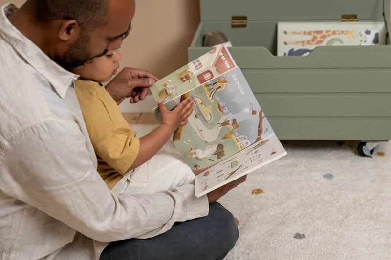 What do you see on the beach? Can you point out the painting in the house? And have you seen the fire truck in traffic? Look and point it out! The beautiful illustrations and recognizable situations in this picture book ensure that your little one will eagerly open this book. Let your child point out the cheerful illustrations, name them, and come up with their own story. It’s fun to do together and it also develops vocabulary. Place the book in the play area so it’s always within reach when your child wants to read alone or needs a moment together.
