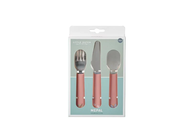 Cut, stir, poke, and take a bite! This 3-piece Mepal Mio cutlery set ensures a flying start when your toddler is ready to feed themselves. Thanks to the light pink color and Flowers & Butterflies illustrations, everyone at the table knows whose cutlery this is. The comfortable handles fit perfectly in small hands, and the fork and knife are designed to be safe for children from 12 months. Eating independently is a big step in your child’s development. Picking up a spoon or fork develops hand-eye coordination, fine motor skills, and also self-confidence. Go ahead and taste those delicious flavors all by yourself.