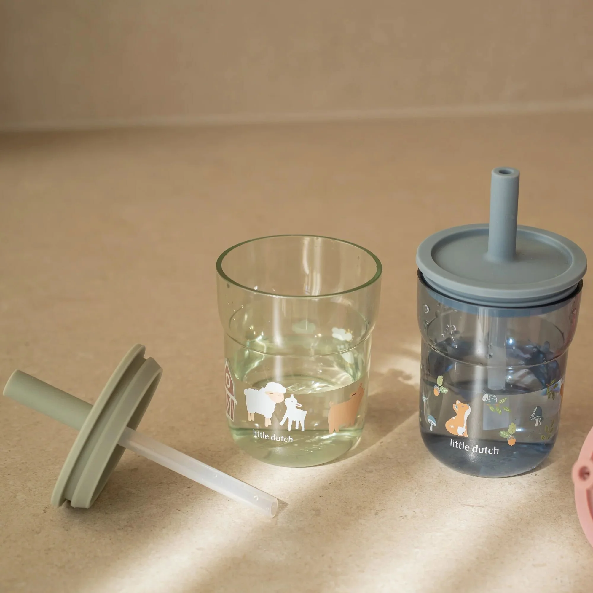 Drinking pleasure for little hands. The Mepal Mio children’s glass with straw and the cheerful Little Farm print of Little Dutch is specially designed for curious little ones. With a capacity of 250 ml, this glass is just right for thirst-quenching sips, at home or on the go. The glass is lightweight, sturdy, and fits comfortably in small hands. The built-in straw makes drinking easier and prevents spills. The flexible lid features a clever straw that keeps insects out – ideal for summer days in the garden or on the balcony. Made from durable, BPA-free material and dishwasher safe. And thanks to the cute farm animal pattern, every drinking moment becomes a little party.
