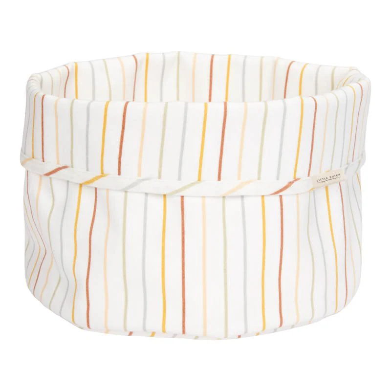 No more scattered diapers, tubes, and bottles: with this round changing table basket from Little Dutch, the changing table stays neat and organized! The changing table basket is beautifully finished and provides storage for all the products you need daily to care for your baby. A beautiful accessory for the nursery. This one from the Vintage Sunny Stripes collection is enriched with beautiful stripes. The changing table basket is also available in other shapes.