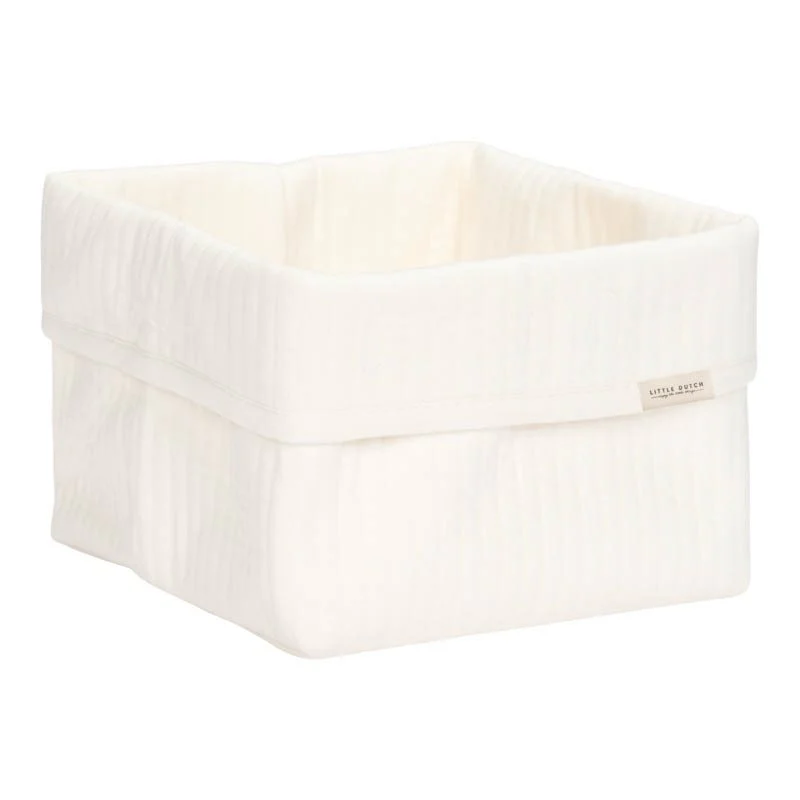 No more scattered diapers, tubes, and bottles: with this small dresser basket from Little Dutch, the dresser remains beautifully tidy and organized! The dresser basket from Little Dutch is beautifully finished and provides storage space for all the products you need daily to care for your baby. A beautiful accessory for the nursery. This one from the Pure Soft White collection features a beautiful, soft white color. Also available in other sizes and shapes.