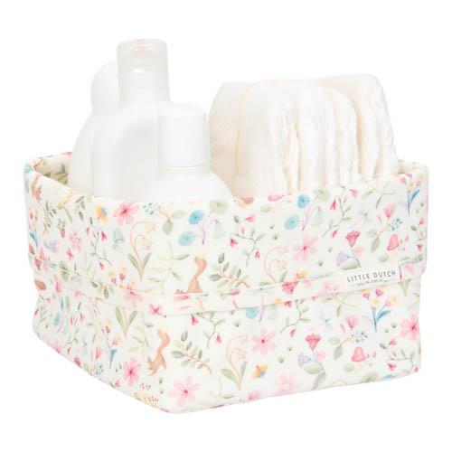 With this storage basket, the changing table remains tidy and organized. Made from 100% organic cotton, it offers ample space to store all your daily essentials for caring for your little one. This basket with the Fairy Wonders design provides a playful decor for storing diapers, tubes, or bottles. Explore the garden while keeping your essential items within reach. A beautiful accessory for the nursery and available in two sizes.