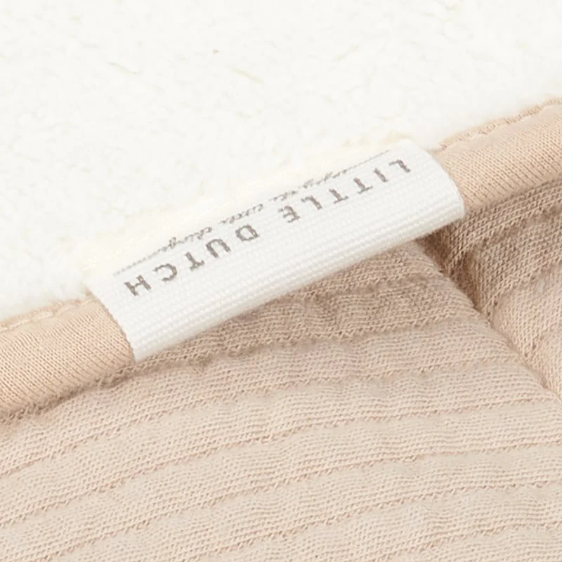 A beautiful cradle blanket that keeps your baby wonderfully warm. With a soft jersey fabric on one side and a delightful teddy fabric on the other, the blanket can also be used as a wrap, bedspread, or play mat. This one from the Pure Beige collection has a beautiful beige color. The outer fabric is made of 100% cotton and the lining of 100% polyester. The cradle blanket can be washed in the washing machine. Also available as a crib blanket.