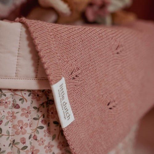 Keep your little one snug and warm during sleep with this beautiful crib blanket. Knitted with care and love from 100% organic cotton, it is incredibly soft, breathable, and warm. The detailed pointelle design of small leaves, combined with the sweet color Pure Blossom, gives the crib and nursery a classic and romantic look. With a size of 110 x 140 cm, you can also use the blanket as a wrap, bedspread, or play mat.