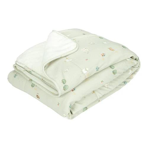 A beautiful crib blanket that keeps your child wonderfully warm. With a soft jersey fabric on one side and a delightful teddy fabric on the other, the blanket can also be used as a wrap, bedspread, or play mat. This piece from the Little Farm collection is enriched with the beautiful farm print. The best of the past combined with the freshness of today. Made from 100% cotton and a TOG value of 3.7. You can simply wash it in the washing machine at 30 degrees!