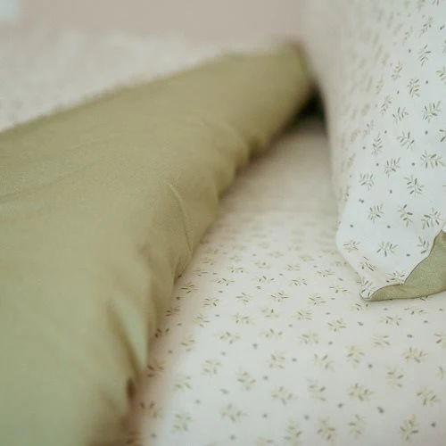 Add a touch of design to the children’s room with a beautifully made bed. With this duvet cover for a crib, your little one will dream away to adventure. The Blueberry Leaves pattern inspires the most beautiful dreams about nature, forests, and gardens. The soft duvet cover is made of 100% organic cotton with the Blueberry Leaves pattern on one side and a solid Sage color on the other side. Both the pillowcase and the duvet cover are comfortable, beautifully finished, and have good breathability. The size of the duvet cover is 110 x 140 cm and the pillowcase is 40 x 60 cm.