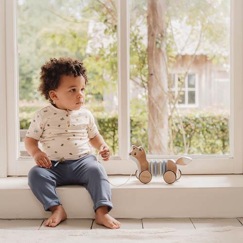 Made of sturdy wood and decorated with colorful rings, this pull-along toy not only offers endless fun but also promotes walking and the development of motor skills.