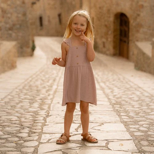 Pixie power in lilac loveliness! Step into an enchanting world with this beautiful dress for little dreamers. Made from soft, stretchy fabric with a charming floral pattern, it embraces your little one in comfort and style. The cute ruffles on the shoulders add a touch of playful elegance, while the wood-look buttons give a classic detail to the design. The dress is made from a blend of organic cotton and viscose, ensuring not only comfort but also making your little one shine in a beautiful lilac color. Pair with a cardigan from the Fairy Garden collection on colder days to keep shining. Available in sizes 74, 80, 86, 92, 98, and 104.