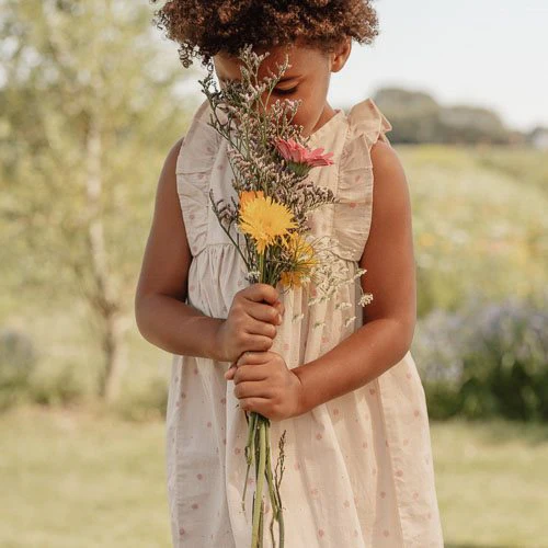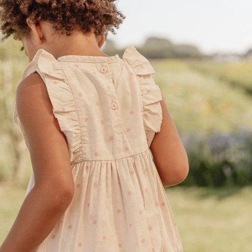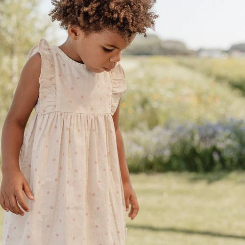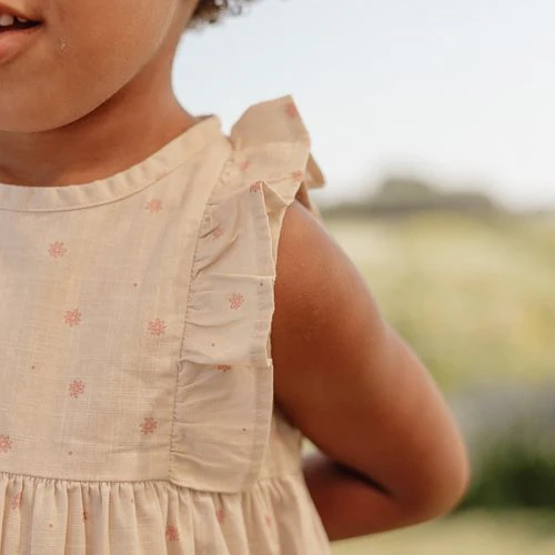Pixie power in lilac loveliness! Step into an enchanting world with this beautiful dress for little dreamers. Made from soft, stretchy fabric with a charming floral pattern, it embraces your little one in comfort and style. The cute ruffles on the shoulders add a touch of playful elegance, while the wood-look buttons give a classic detail to the design. The dress is made from a blend of organic cotton and viscose, ensuring not only comfort but also making your little one shine in a beautiful lilac color. Pair with a cardigan from the Fairy Garden collection on colder days to keep shining. Available in sizes 74, 80, 86, 92, 98, and 104.