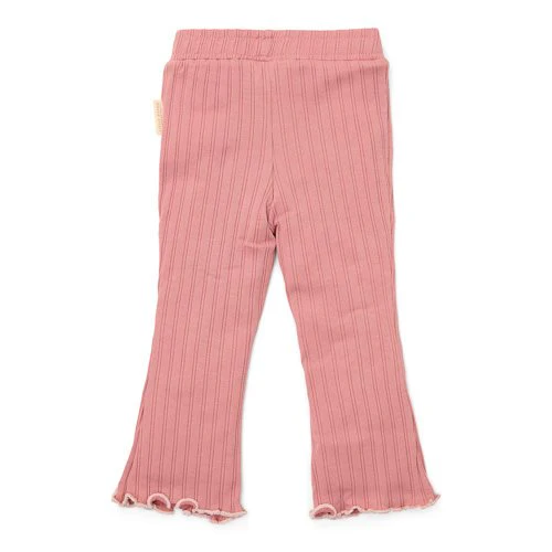 Flare in style! These cute Pink Blush pants feature a stylish flared silhouette that adds a touch of flair to any outfit. Made from soft organic cotton with a ribbed texture for a fine fit. The elastic waistband offers flexibility and comfort so your little one can play and explore without limits. The subtle stitching at the bottom of the pant legs, in a contrasting color, creates a beautiful ruffled edge for extra charm. Opt for a co-ord set with the matching t-shirt or mix and match with any other item from the coordinated Fairy Garden collection. Available in sizes 74, 80, 86, 92, 98, and 104.
