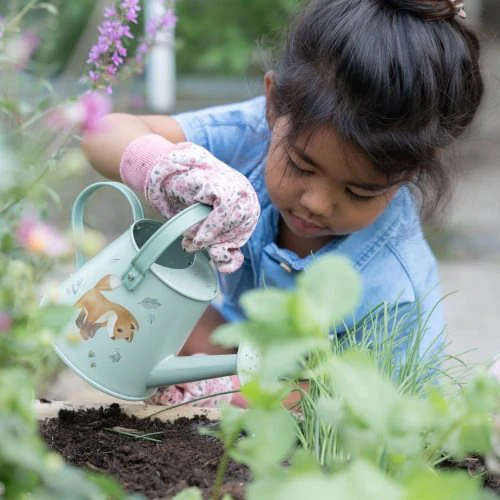 Discover the complete garden experience with the Little Dutch Garden Gift Set! This 10-piece set contains everything young gardeners need: a handy watering can, a small tool set, 2 sturdy gloves, and garden markers. The wooden garden markers are perfect for writing the names of plants. Everything can be neatly stored and carried in the sturdy cotton canvas tool bag, decorated with illustrations from the Forest Friends collection. The bag has a large main compartment, 6 small side pockets, and 2 large side pockets. This gift set offers not only functionality but also an organized and stylish way to start gardening. An ideal gift for little green fingers!