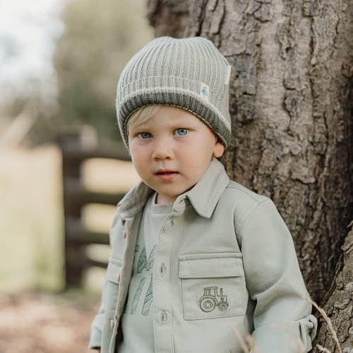 Prepare for your adventures in style with this knitted hat in a natural green color. Made from organic cotton, it offers a cozy knitted design that is perfect for colder days. The contrasting stripe at the brim is not only a nice detail but also ensures a snug fit around the ears, keeping them extra warm. Effortlessly combine this hat with your favorite items from the Farm collection for a country look from head to toe. Available in two sizes: 74/86 and 92/104.