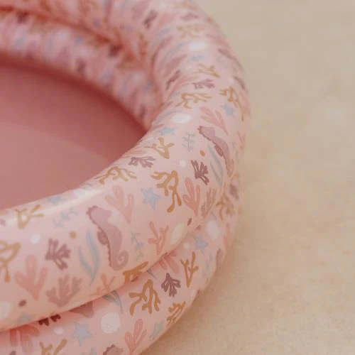 Ready for a lot of water fun? On warm days, the Ocean Dreams Pink pool is easy to inflate and set up in your garden. With a layer of water in it, your child has a delightful little pool to cool off in. Lots of playtime fun guaranteed! The pink pool features the recognizable print from the Ocean Dreams collection. The pool has a size of 80 cm.