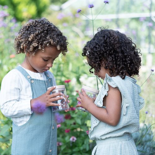 Discover the world of insects with this practical insect jar! The wooden lid, equipped with a magnifying glass, lets you see the smallest details clearly. The lid can be easily removed, and the jar is decorated with cheerful Fairy Garden illustrations. An insect card is included to check off all the insects. The transparent plastic allows you to view the insects from all sides, while the air holes provide ventilation. Perfect for curious children who want to explore nature!