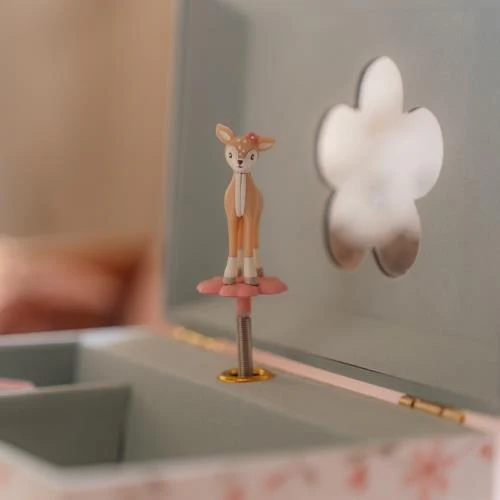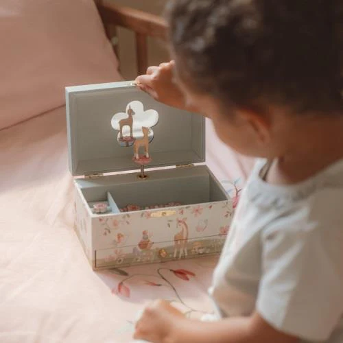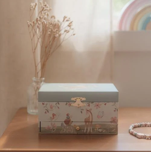 Make your little one happy with their own musical treasure chest for jewelry! This colorful box with the cutest Forest Friends on it offers enough space for the most beautiful jewelry or other valuable items. After winding it up, music plays when the box is opened and a little deer starts dancing in front of the mirror. This is the perfect gift that your little one will cherish for a lifetime!