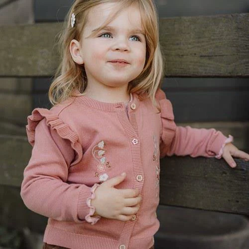 Knitted cardigan – Pink – Little Farm – Flowers