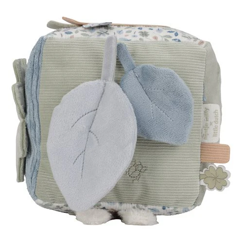 Discover the world with miffy! This super soft activity cube in Lucky Leaves design will surely spark your little one’s curiosity. Each side features a different activity with various textures and shapes that help develop the senses and, of course, provide endless entertainment. The cube can be grasped and turned and includes a mirror for self-discovery.