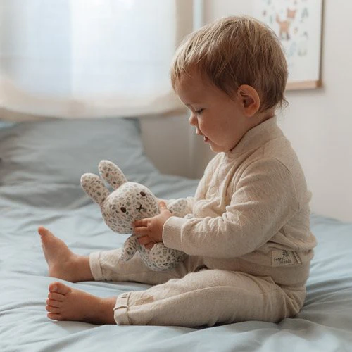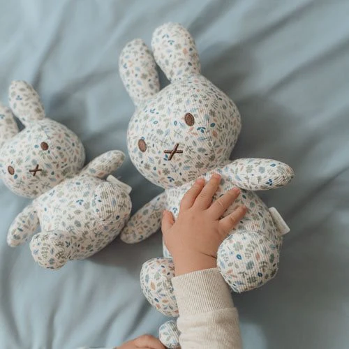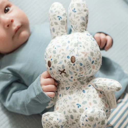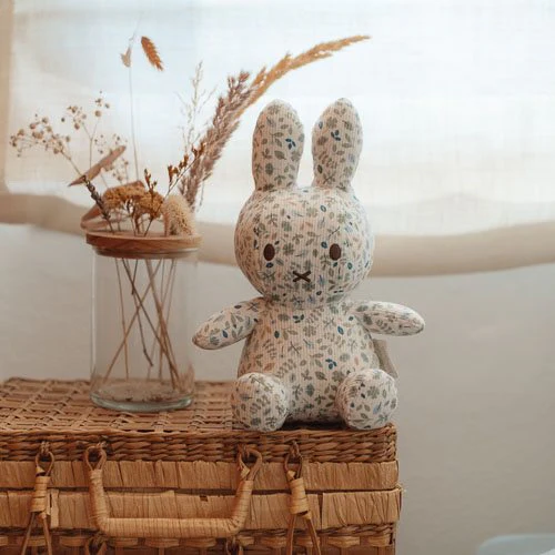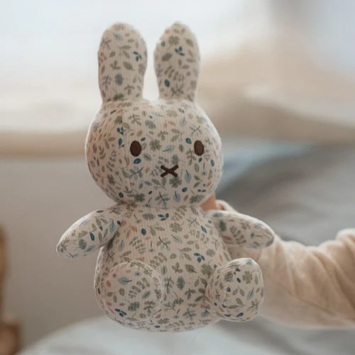 Hello there, miffy! This cute 20 cm plush is completely covered with the Lucky Leaves pattern and might be the most beautiful miffy of all. With her soft fabric and romantic appearance, she brings a touch of warmth to any space. This iconic bunny is a wonderful addition to the nursery and a loyal friend for your little one.