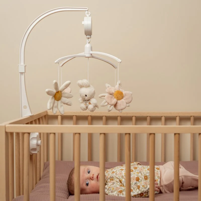 Follow miffy as the song starts playing! She is surrounded by the most beautiful flowers from the Vintage Little Flowers collection of Little Dutch. While the flowers and miffy circle around, you can relax with the sweet music. Wonderful entertainment for your little one that stimulates visual development. The music mobile is suitable from birth and can be easily attached to a crib or playpen.
