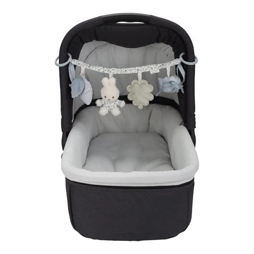 Try miffy to catch it! This stroller toy is not only beautiful to look at when you’re on the go, but it also invites you to play. miffy, the leaves, the four-leaf clover, and the beetle each have a function to discover. Find the rattling sound, the squeaking, and the crinkling! Easily attach the stroller toy to the stroller and your little one will be entertained while you’re on the move. Also great for hand-eye coordination!