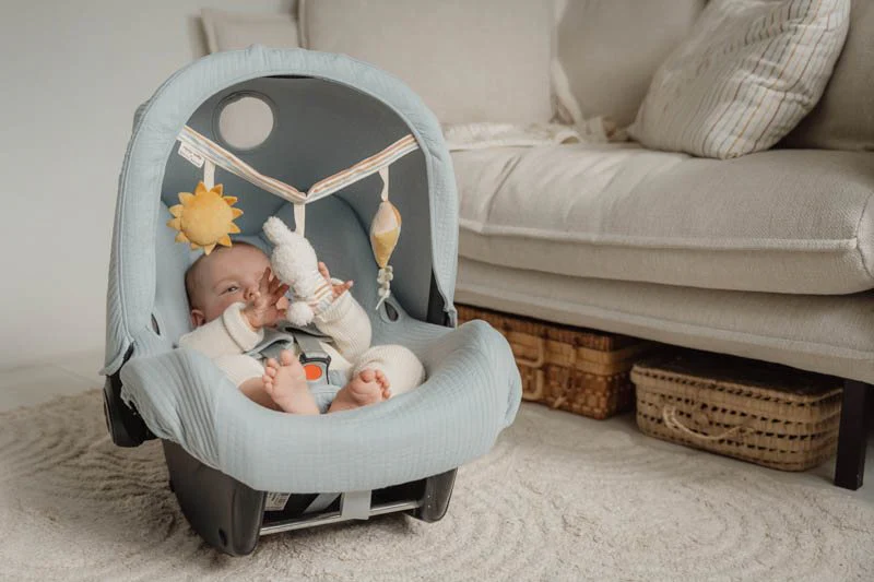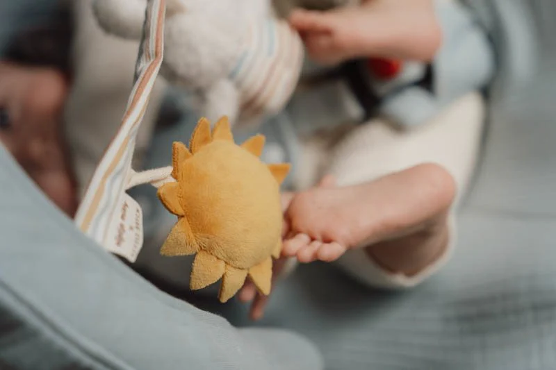 Try to catch Miffy! This stroller toy is not only beautiful to look at when you’re on the go, but it also invites play. Miffy and the kite and sun from the Vintage Sunny Stripes collection by Little Dutch each have a feature to discover. Find the rattling sound, the squeaking, and the crinkling! Easily attach the stroller toy to the car seat or stroller and your little one will be entertained while you’re on the move. Also great for hand-eye coordination!