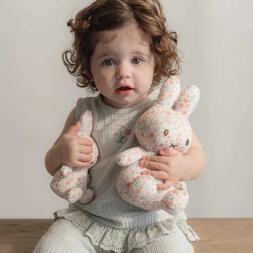 Hi miffy! This cute 15 cm plush, covered with the Lucky Blossom pattern, might just be the sweetest miffy ever. With her soft fabric and cozy appearance, she brings a smile to any space. This iconic bunny is a beautiful addition to the nursery and a loving friend for your little one.