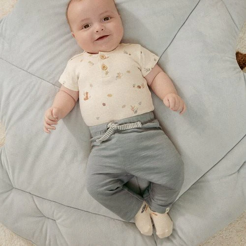 Perfect for any adventure, small or large. This pants offers comfort and style for every day. Made from organic cotton, it is perfect for every adventure of your child; From turning side by side, reaching to toys, to the first attempts to crawl. The elastic waistband with drawstring ensures a close -fitting fit, making every movement possible. Combine seamlessly with the T-shirts from the Forest Friends collection for a coordinated look from head to toe. Available in sizes 44, 50, 56, 62, 68 and 74.
