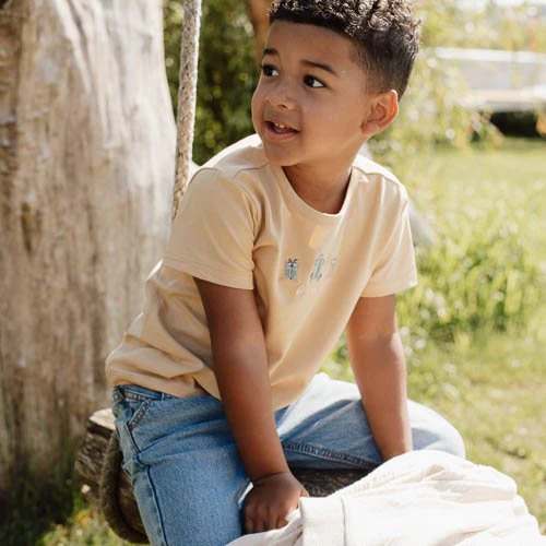 Denim is always a good choice! Especially when it comes to little explorers. These jeans are designed to keep up with your boundless imagination. Made from lightweight and sturdy denim, they are the perfect pants for adventures big and small. With an adjustable elastic waistband and handy drawstring, these jeans ensure a comfortable fit suitable for every little waist. These timeless jeans match every item from the Forest Friends collection, so mix and match to your heart’s content. Available in sizes 74, 80, 86, 92, 98, and 104.