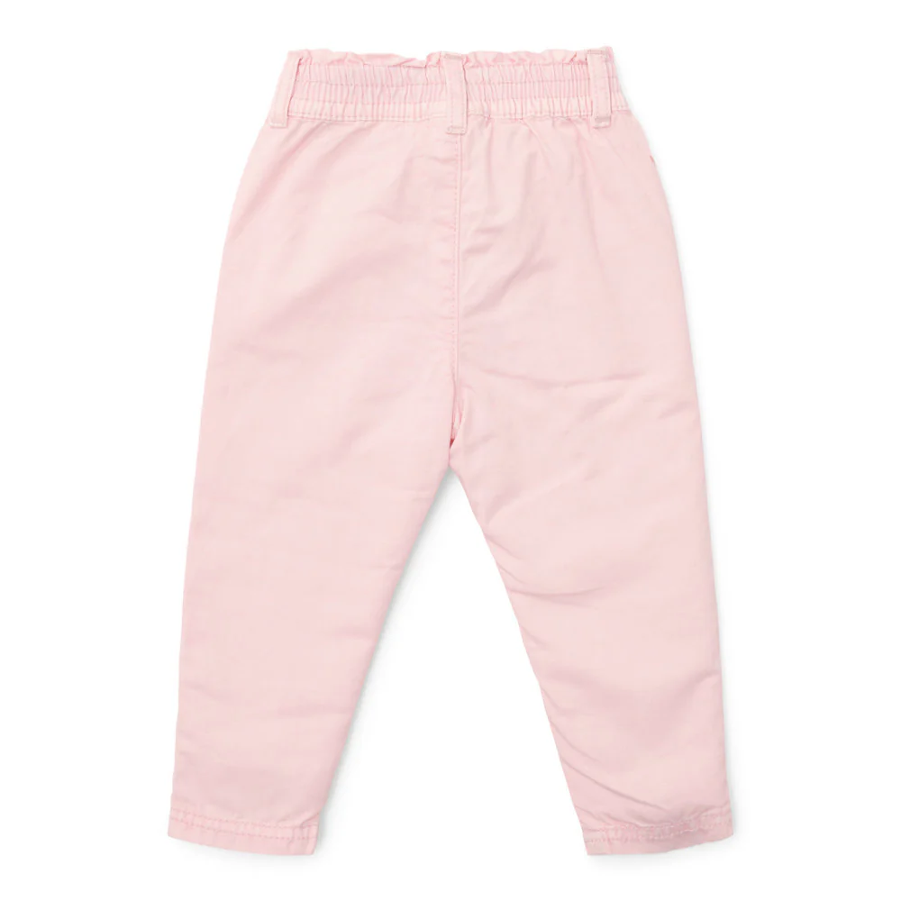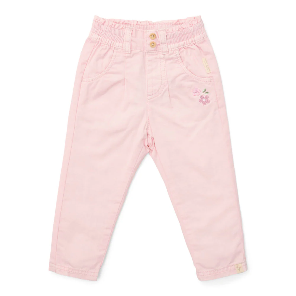 Shine like a lotus flower! These charming pants in a light pink shade are made from a comfortable fabric with a subtle stretch, for a soft and flexible fit and all-day comfort. The trendy paperbag style features an elastic waistband with a snap button closure for easy on and off. Made from organic cotton, these pants have a fine embroidery of Fairy Garden flowers just below the front pocket. Effortlessly pairs with any piece from the coordinated Fairy Garden collection. Available in sizes 74, 80, 86, 92, 98, and 104.