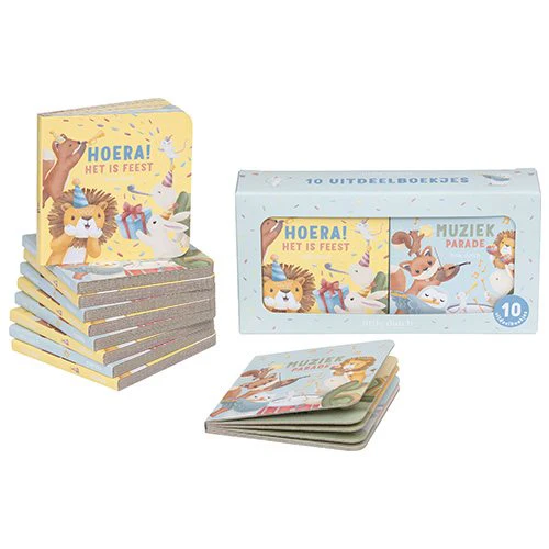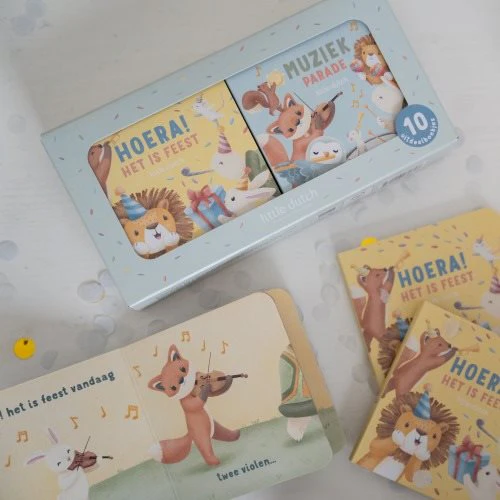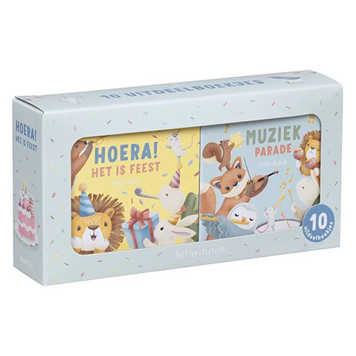 With the giveaway booklets from Little Dutch you make every party even more fun. This set of 10 small booklets contains two cheerful titles: Hooray! It’s a party! and Music Parade. Perfect for little children’s hands and ideal for handing out at birthdays, at school, or as a thank you after a fun playdate.